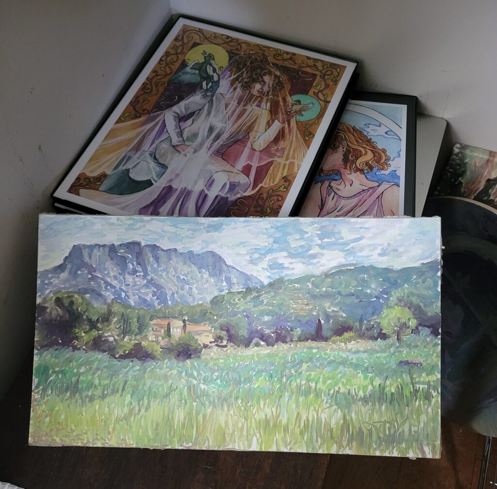 Drawing on two decades worth of life experience, I make all kinds of artwork in a wide variety of mediums. From impressionist oil en-plein-air tableaus, to structured watercolor paintings, or one-of-a-kind pieces in ceramics, papercrafts, or pen and ink.